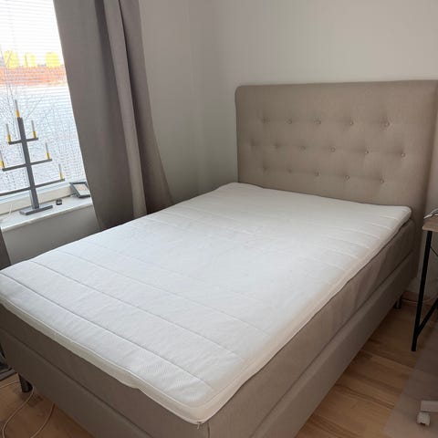 Sängstomme gjöra med ribbotten och resårmadrass. Bäddmadrass med memoryfoam tussöy tillkommer vid önskemål, vissa fläckar på denna men går att tvätta överdraget. Sängstomme kan monteras isär inför köp.