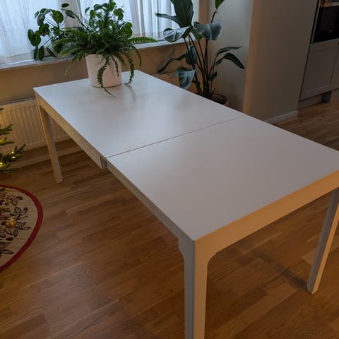 Jysk matbord, diameter: 105 cm, Höjd: 75 cm.
