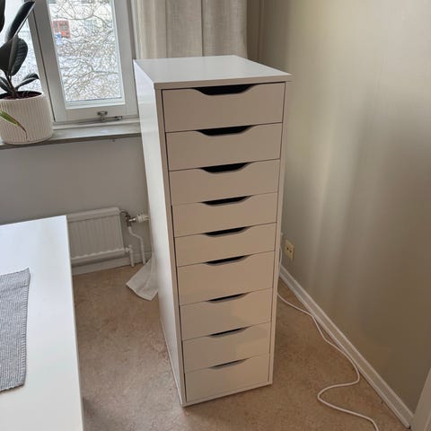 Säljer en IKEA Alex hurts med lådor i vitt.