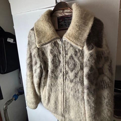 Öronlappsmössa + tumvantar i ull av textilkonstnär Maj Wennberg, Kiruna.