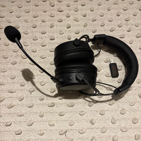 Corsair Void Pro trådlösa hörlurar i svart färg. Hörlurarna har en justerbar huvudbygel och öronkuddar för komfort. Inkluderar USB-mottagare för trådlös anslutning och en separat ljudkabel.