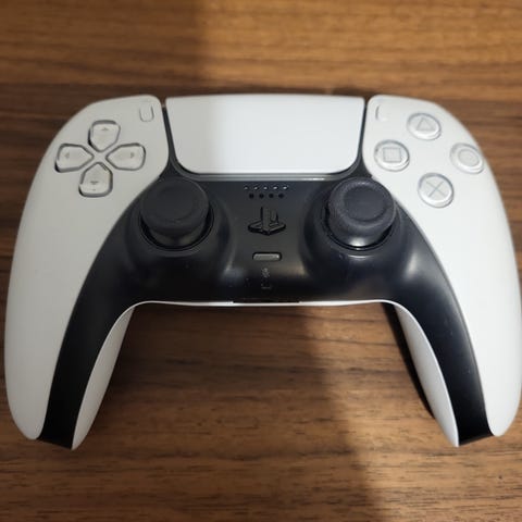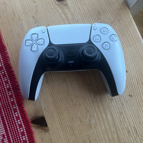 Sony PlayStation DualSense trådlös handkontroll i vitt. Kompatibel med PlayStation-konsoler, erbjuder trådlös anslutning och ergonomisk design för spelkontroll.