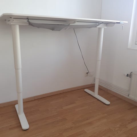Sökord: bord, kontor, arbetsbord, skrivbord, stå bord, pelarbord, eldriven, elektrisk, liten, barnsäkert.