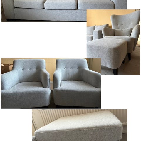 3 sits soffa och stor fåtölj med pall.