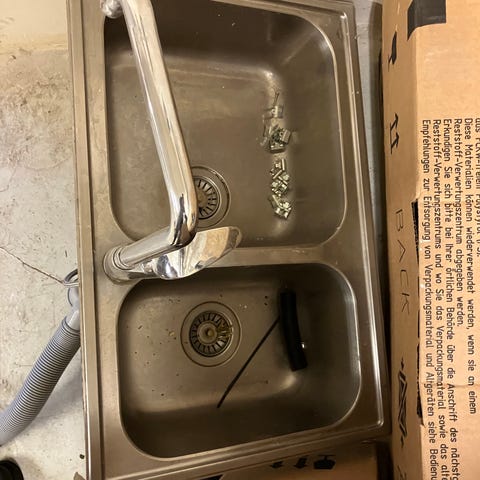 En fin dubbel diskho med vattenlås 90x50