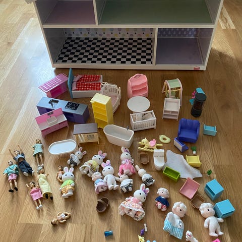 Sylvanian Families Dockhus leksakshus i plast med två våningar och möbler samt figurer.