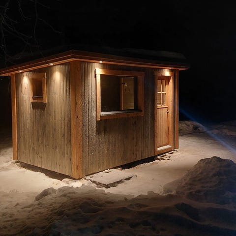 I denna lilla bastu får man plats med upp till 3 bastu badare. En stor liten bastu, helt enkelt! I bastun ingår komplett vedeldad bastuaggregat med 22 liters vattentank, stenar och såklart bastubänkar.