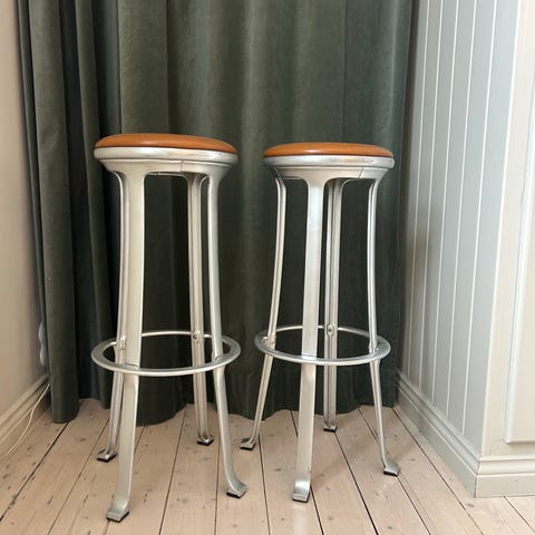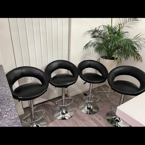 Barstolarna är höj- och sänkbara, snurrbara och har stabil kromad fot med fotstöd. Bekväma att sitta på och passar perfekt vid köksö eller bardisk.