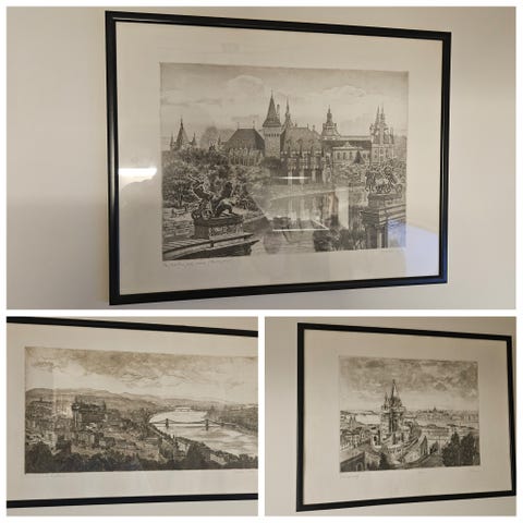 4 inramade tavlor, konsttryck med arkitekturmotiv