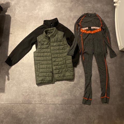 Vinterjackor, överdragsbyxor, fleece, underställ och varma kängor i storlek 134-140