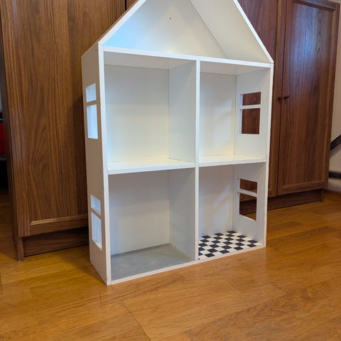 Charmigt dockskåp i klassisk stil säljes. Dockskåpet är i rosa toner med många fina detaljer, flera rum och öppningsbara fönster. Perfekt för lek eller som dekoration.
