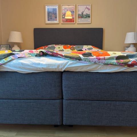 Säljer pga flytt en vacker och mycket praktisk säng med förvaring. Modellen KINTORI från Chilli 160x200(madrassdimensioner), ramlängd 207, gavelbredd 162. Mjuk behaglig beige/crème sammet. Består av huvudgavel och två „boxar“ med förvaring, hydraulisk mekanism som håller öppen medan du lägger i/tar sakerna. Ventilationsöppningar låter luft cirkulera i förvaringsdel. Tunn madrassskydd ingår. Fräsch och ren , nästan som ny. Djur &rökfritt hem.