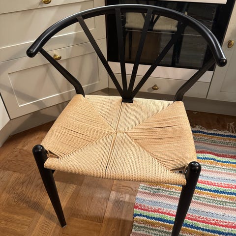 Stolen är svart med naturfärgad sits och passar perfekt runt matbordet. Stabila och bekväma att sitta på.