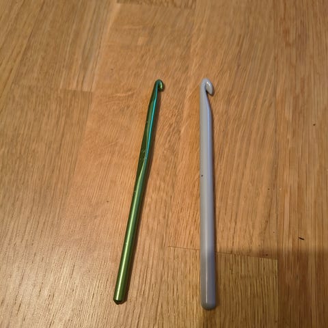 Oanvända Set med virknålar i storlekar från 2,5 mm till 6.0 mm. Virknålarna har ergonomiska handtag i gult och svart material för bättre grepp och komfort vid virkning. Utan prislapp och förpackning.