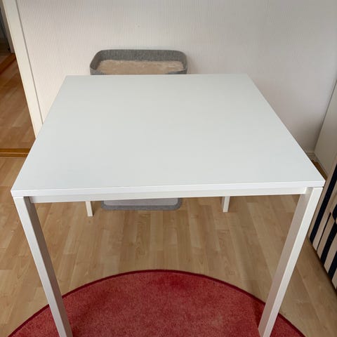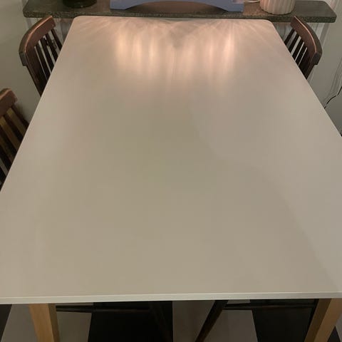 Bordet är 120 cm långt och 75 cm och har några smärre märken på bordsskiva. Är nedmonterat
