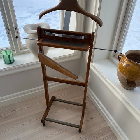 Arcchio klädhängare i vit trä med flera horisontella stag för upphängning av kläder och accessoarer. Stabil konstruktion med stöd för golvplacering.