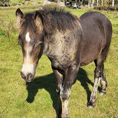 Låg i rang och möter en alltid med ett dovt gnäggande när man kommer till hagen, hanteras av nybörjare