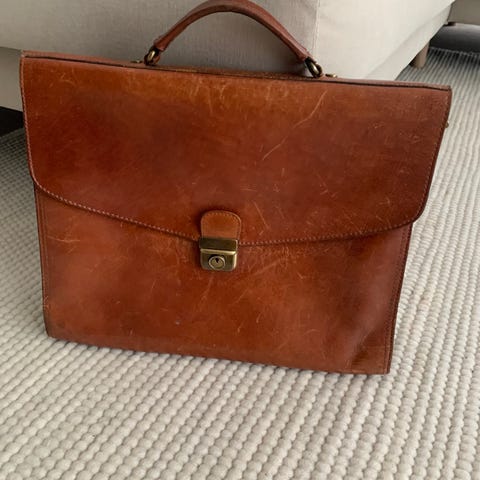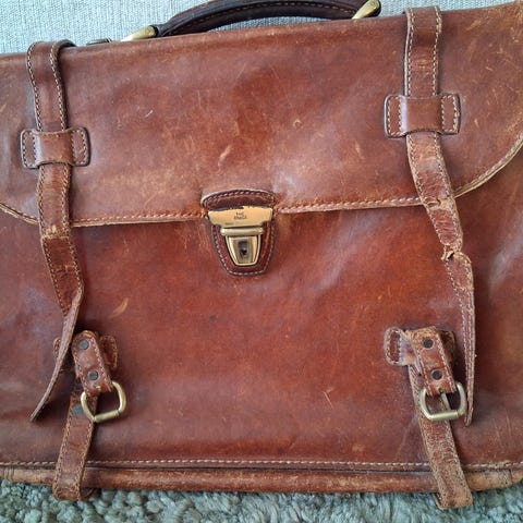 VALENTINE Italiensk vintage portfölj i kraftigt äkta läder med bärrem