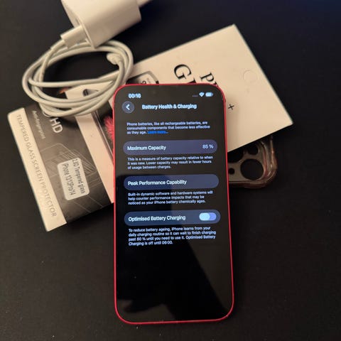 Laddare, sladd och hörlurar är alla original, det finns repor på skärmen, det är en ganska gammal telefon men den fungerar utan problem.