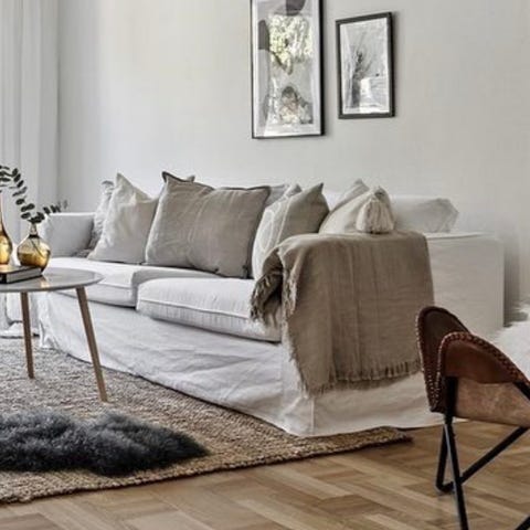 Ljusbeige soffa 3-sits från IKEA, modell Karlstad. Finns några enstaka mindre fläckar på klädseln men överlag är soffan i bra skick. Ny klädsel till soffan inköpt från Bemz 2021. Klädseln är avtagbar och går att tvätta.