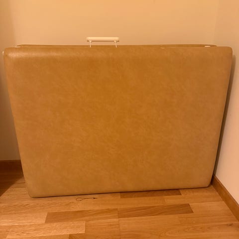 Taurus massagebänk i beige färg med hål för ansikte. Passar för olika massagebehandlingar och har en stabil ram.