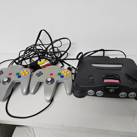 Nintendo 64 spelkonsol med 4st handkontroller inkl vibratorer samt 3st spel (Mario Kart 64, Super Mario och Goldeneye). Allt fullt fungerande och i fint skick.