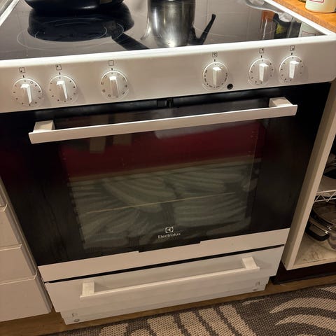 Electrolux EKC60053W glaskeramikspis med fyra kokzoner och ugn. Spisen har vit färg och är utrustad med vred för temperatur- och funktionsinställning. Passar för hushållsbruk och matlagning.
