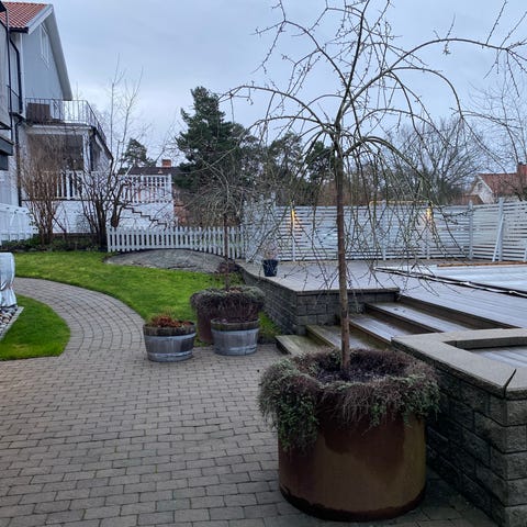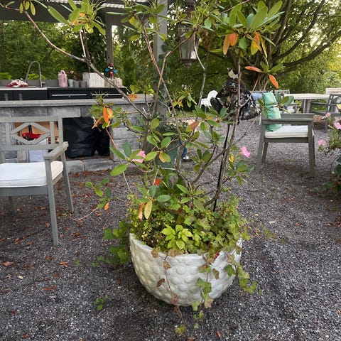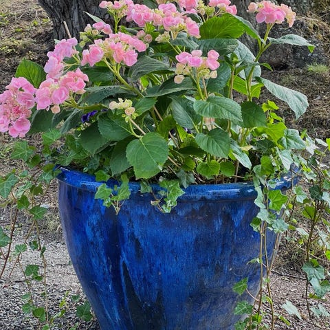 Finns två st. Den ena är lagad med pelargoner och murgröna i vinterdvala. Den andra är oplanerad som bilden men hel.
