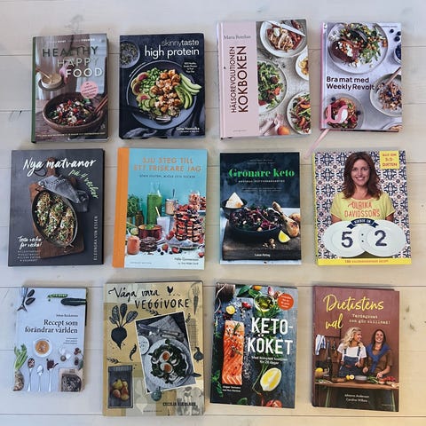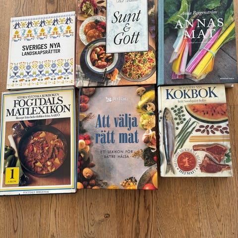 Samling av olika kokböcker, alla i bra skick, säljes tillsammans.