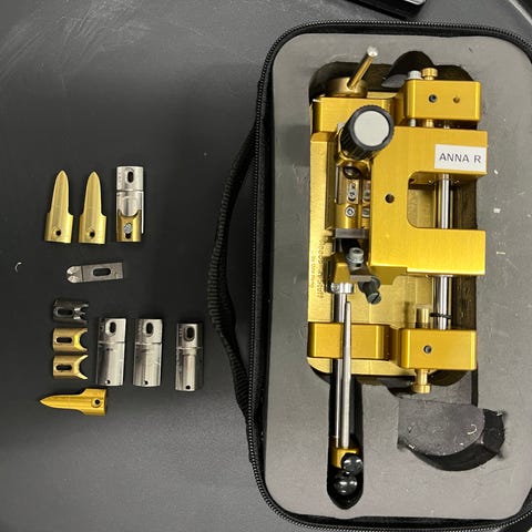 Följer original hård läderetui, rörask i läder, tork/rengörings borstar samt ett fodral med axelrem och förvaringsfack för tillbehör.
