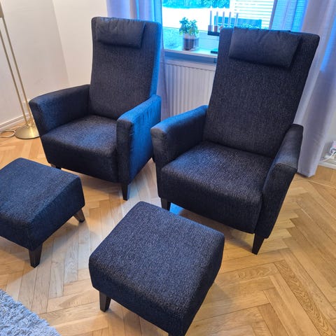 Fåtölj med fotpall.