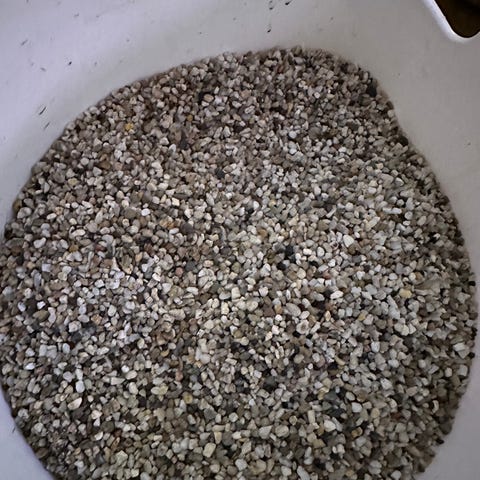 Två små hinkar med grus som jag använt till ett 160 liters akvarium, väger 16,8kg.