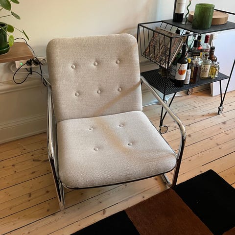 Storlek: Höjd 82 cm, bredd 61 cm, djup 74 cm, sitthöjd 39 cm.