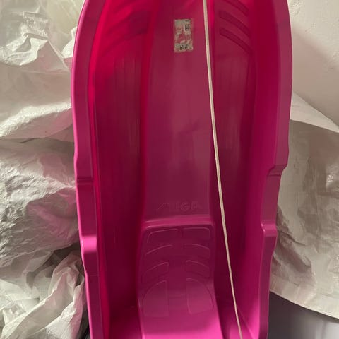 Liten pulka med ryggstöd att dra små barn. Varumärke Rocko