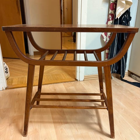 Trevlig hallmöbel med spegel fram, bakom avhägning och hylla.