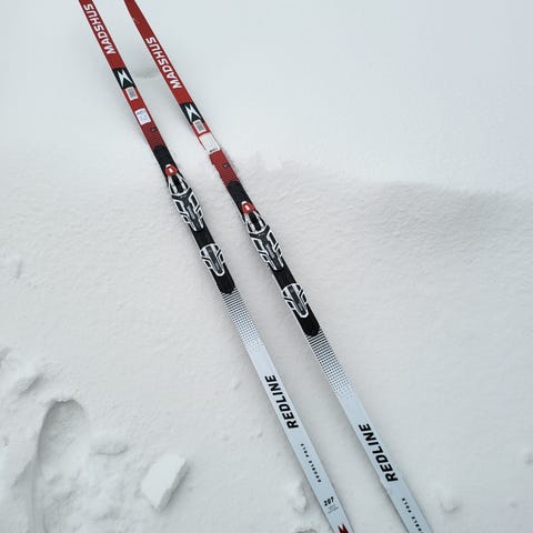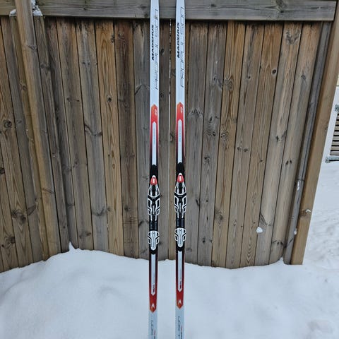 Skidorna är köpta begagnade och ska passa för kallare fören och en åkare runt 80kg.