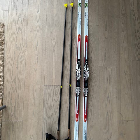 192cm långa, fina belag och Rottefella bindning sitter på.