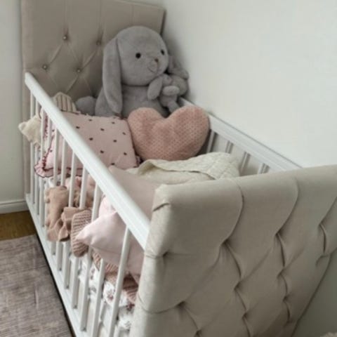 • Möjlighet att ta bort ena sidan och använda spjälsängen som bedside crib