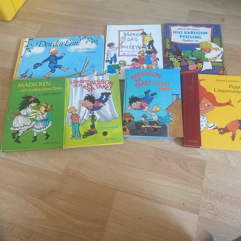 Klassiska Barnen på Bråkmakargatan av Astrid Lindgren, utgiven 1956, om lilla Lotta och syskonen Jonas och Mia-Maria som bor i ett gult hus pa Bråkmakargatan.