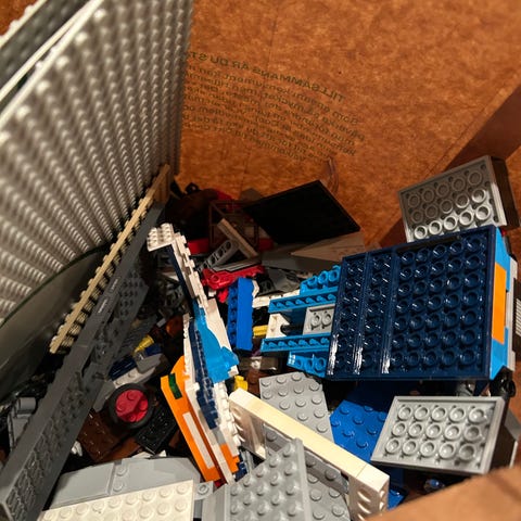 Blandat Lego (en kasse med många delar)