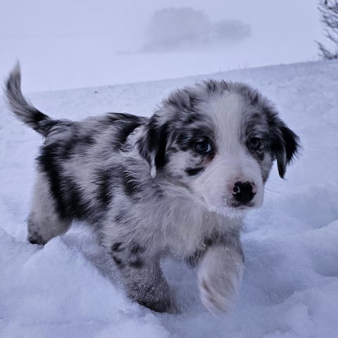 Pappa: MAS (mini australian shepherd). Röd med vita tecken.
