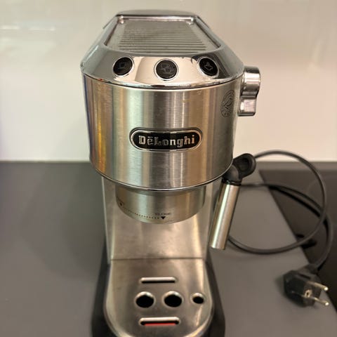 DeLonghi Dedica Style espressomaskin i rostfritt stål. Kompakt design för hemmabruk med möjlighet att brygga espresso och ånga mjölk. Utrustad med ångstav för cappuccino och andra kaffedrycker. Passar för användning i kök med begränsat utrymme.