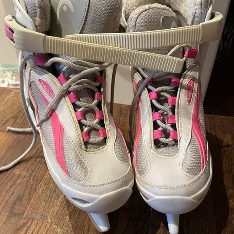 Skridskorna ser knappt ut att vara använda förutom skenorna, stålet som ser lite använt ut.