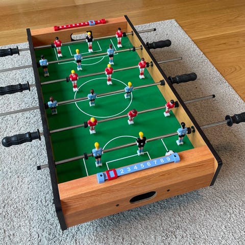 Bordsfotbollsspel i trä med poängräknare