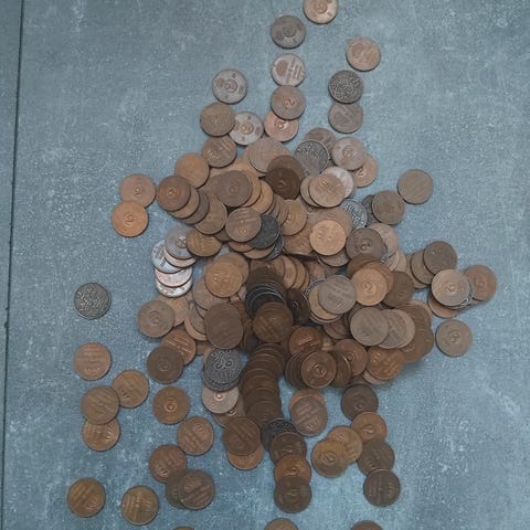 Säljer en större samling svenska 1-öresmynt i koppar, totalt 278 stycken, fördelade över åren 1916 till 1971. Perfekt för samlare, nybörjare eller som komplettering till befintlig samling.