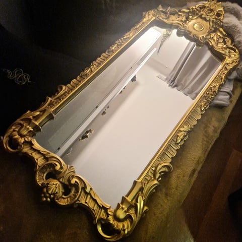 Ett stort Rokoko spegel i kanon skick med en guld ram som passar för smakfull inredning på hallen eller på korridoren ovan på byrån så det blir kompletterat.
