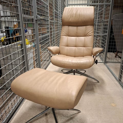 FÅTÖLJ, 1900-talets slut, möjligen Gerard Van der Berg, klädd i svart skinn, ställbar, längd 130, sitthöjd 38 cm