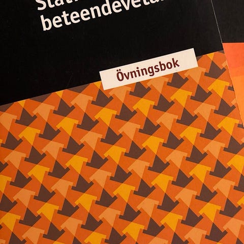 Statistik för beteendevetare (4e upplagan, 2020) av Elisabet Borg & Joakim Westerlund. Detta är paketpris för faktabok och övningsbok, men de kan även säljas separat om så önskas. Skriv för pris
