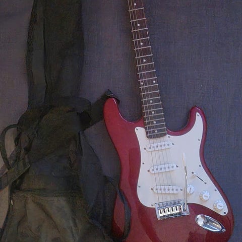 LundMatz UG-1 elgitarr med solfjäderliknande solbrun finish. Gitarren har sex strängar, justerbar hals, och kromade stämskruvar. Levereras med ett svart mjukt fodral och skickas i en gitarrkartong. Den är intonerad och stränghöjden är justerad. Fender mikrofon som stallmikrofon. Bra ljud och skön att spela på.