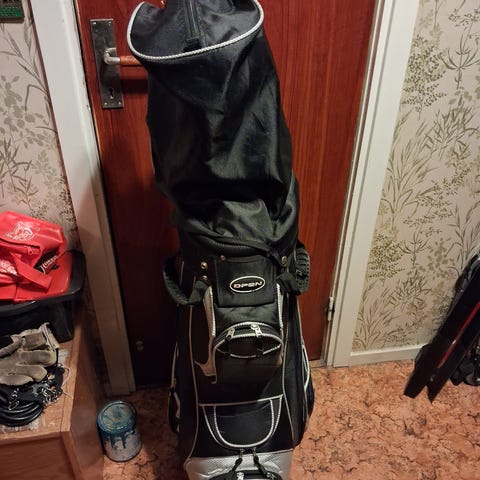 Top Flite golfbag med flera fack och bärremmar. Designad för att stå upp med hjälp av inbyggda stödben. Skickas inte. Hämtas i Holmsund.